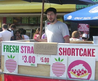 By the time we got out tho the boardwalk it was alreaddy poppin. There were people everywhere! Once we got set up, the first few sales were slow, but after and hour or two, the sales got better and beter, untill we were actually "slammed" it was great. And the our good friends Sal and nick showed up just a the right time to get the one of the last tastes for the day before we ran out of strawberries.